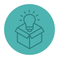 Light bulb emerging from an open box icon in a teal circle.